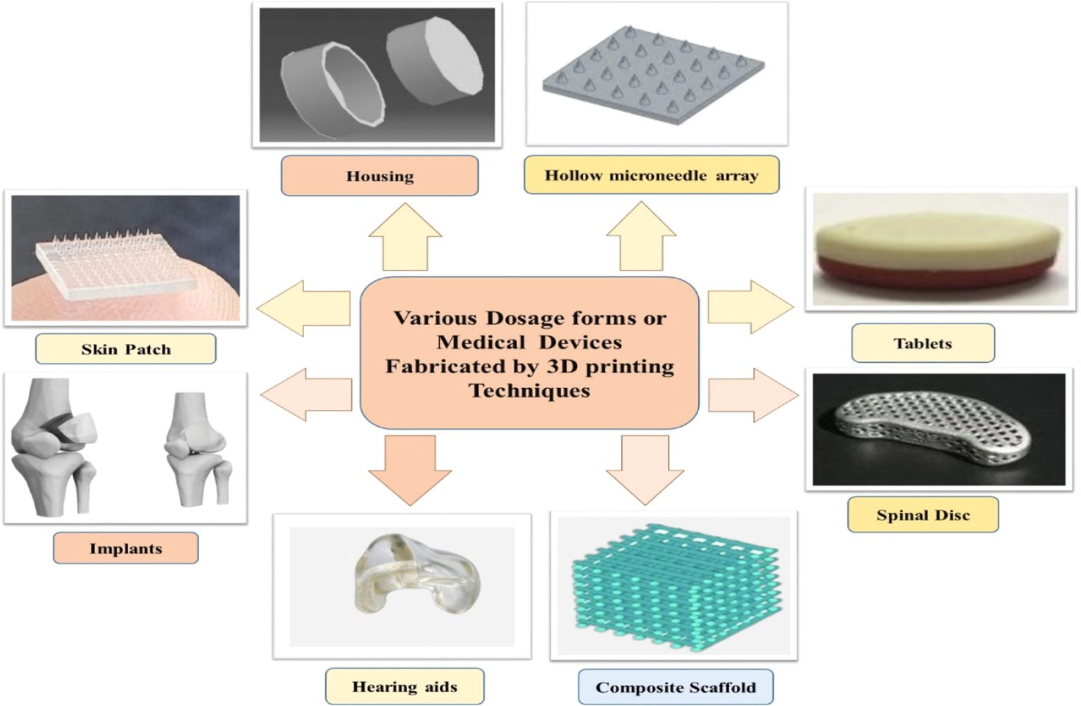 △利用3D 打印技术制造的各种剂型或医疗器械。图片来自 ScienceDirect。