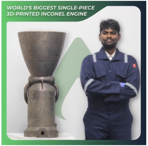 2025年8月8日,印度民营航天企业 Agnikul Cosmos 公布了其3D打印的整体式因科镍合金火箭发动机。火箭发动机全长1米,从燃料入口到喷焰出口无任何焊缝、接头和紧固件。该发动机为航空航天技术带来了革命性变革。