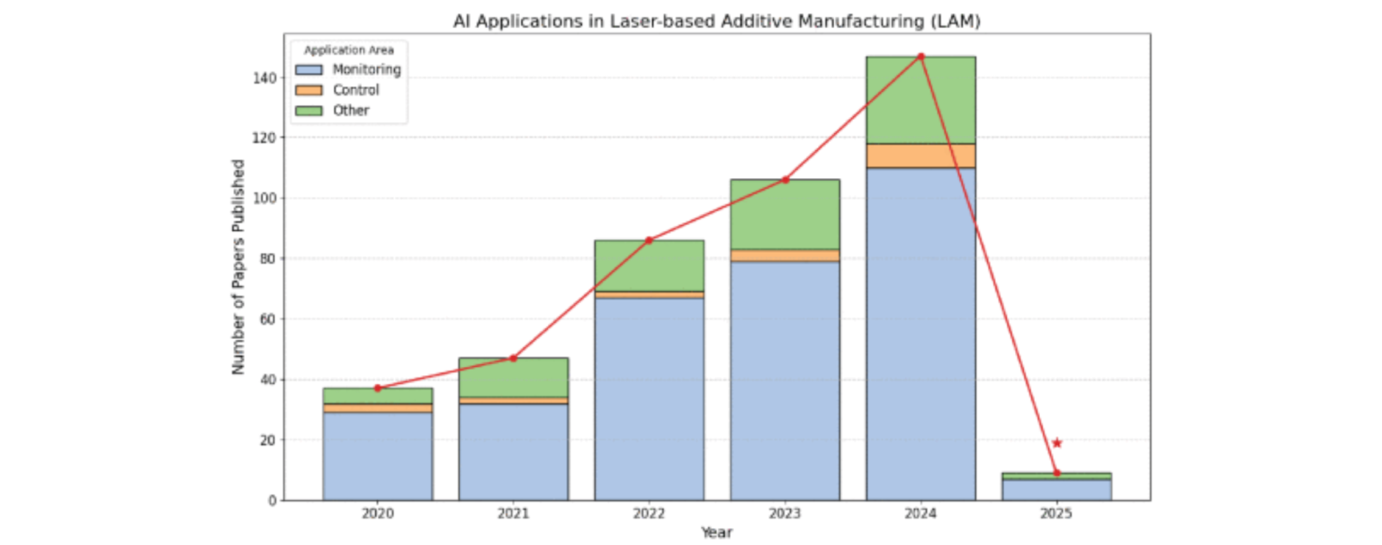 通过分析 2021 年至2024 年间发表的 16 项研究,综述发现62.5% 的研究已在现实环境中部署了AI驱动的控制器,而 56% 的研究将AI 专门应用于强化学习 (RL) 等控制策略。在所审查的研究中,62.5% 的研究将 AI 用于过程建模或监控,68% 的研究针对由过热或过热引起的不稳定性——这是 LAM 中缺陷的主要来源。