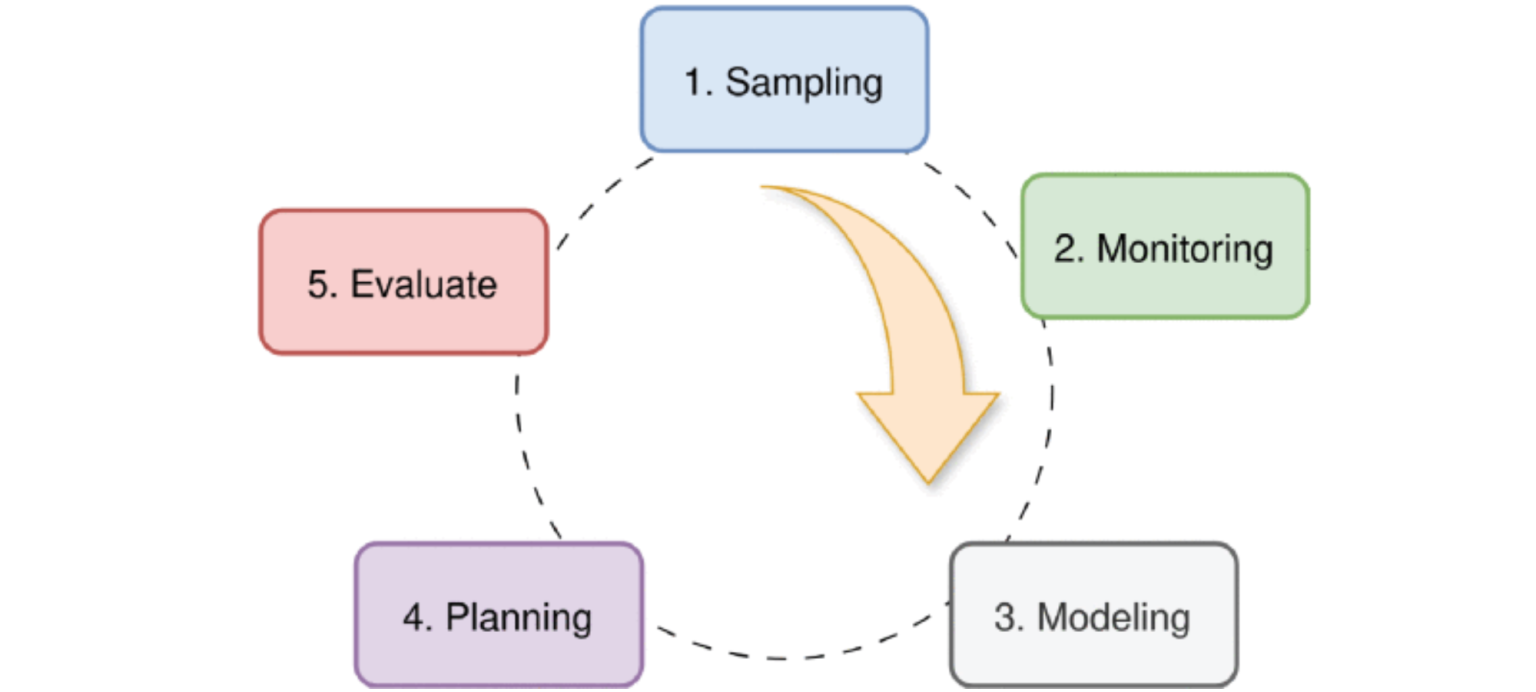 △控制器开发流程,重点介绍关键步骤:采样、监控、建模(动态)、规划(最优控制措施)和评估