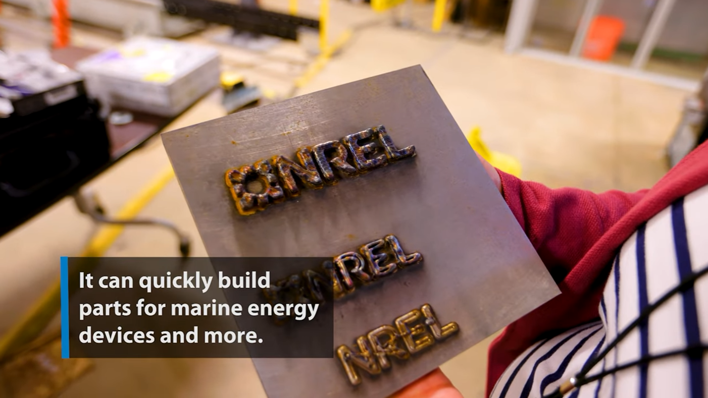 Murdy)说道:“与塑料相比,金属部件可以承受5到10倍的力。这种耐用性对于海洋能源设备至关重要,这些设备利用波浪、洋流和潮汐等运动发电——如果完全利用这些能量,能够满足美国高达60%的电力需求。”到目前为止,开发全尺寸海洋原型既昂贵又耗时。新型打印机改变了这一现状。NREL 研究工程师 Casey Nichols 说道:“我们在使用小型机器进行快速成型和增材制造方面拥有丰富的经验。但拥有一台更大的 3D 打印机让我们能够进行更大规模的研究。”