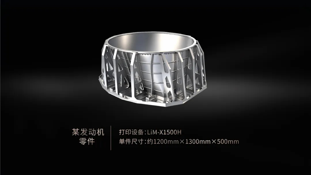 LiM-X1500H打印的某发动机关键零件,含有大量镂空及加强筋结构,传统工艺制造难度大、效率低。3D打印大幅简化生产流程,缩短加工周期,成形效率提升50%以上,同时显著减少机加工切削量,提高材料利用率,降低综合成本。