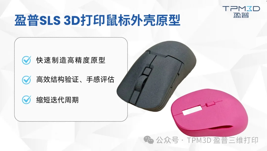 盈普帮助外设品牌在设计人体工学鼠标时,外壳形状普遍曲面变化丰富。利用盈普SLS