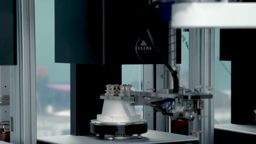 我们不生产自己的打印机;相反,我们采用市售的打印机,并集成到为我们的应用构建的定制系统中。这就好比我们不生产自己的方向盘,而是生产自己的汽车。我们采购机器人,组装系统,并与第三方合作制造机器。我们的重点是应用本身:了解牙科制造中的具体问题,并定制技术来解决这些问题。为了推动这一整合,他的团队在过去六个月内已发展到