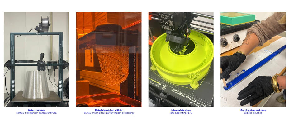 从概念到原型的整个过程由3D打印完成,这为设计师提供了速度和灵活性。底部的透明水箱以及上方的中间部分均采用熔融沉积成型