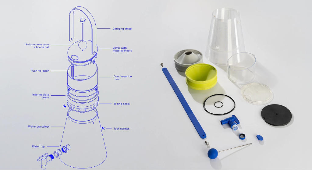 该装置的每一个细节都源于人们在日常生活中的使用方式。它配有方便携带的手柄,透明的储水箱可以显示已收集的水量,模块化结构方便拆卸维修或扩大使用规模。紧凑的尺寸使它看起来更像是一件日常家居用品,而非一台高科技机器,更适合家庭使用。