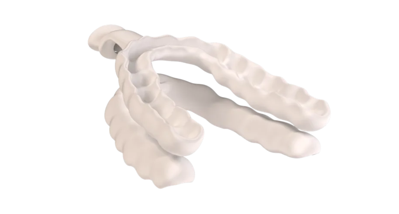 多年前发明,通过打开咬合并将下颌向前移动来增加气道空间并改善夜间呼吸,从而治疗阻塞性睡眠呼吸暂停 (OSA)。