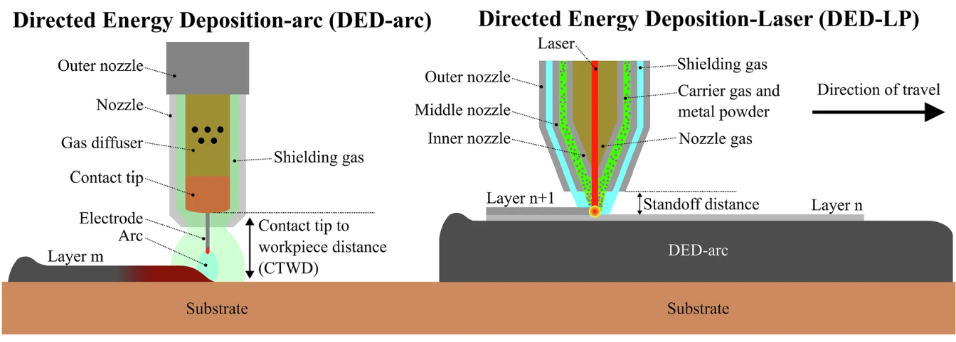△异步 DED-arc 和 DED-LP 过程的可视化。图片来自佐治亚理工学院。