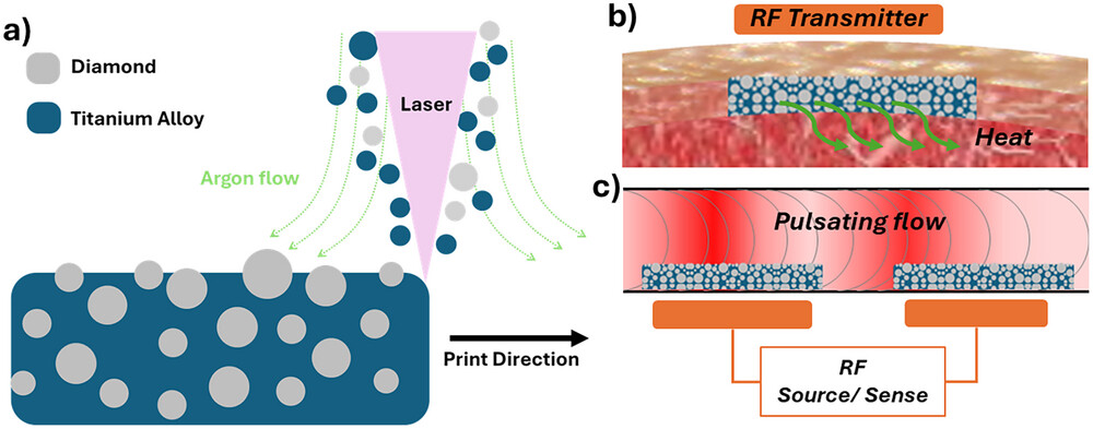 2025年9月29日,来自皇家墨尔本理工大学和悉尼大学的研究人员开发出一种新型3D打印金刚石-钛复合材料,可以改变医疗植入物在体内的供电和监控方式。相关研究以题为“Additively