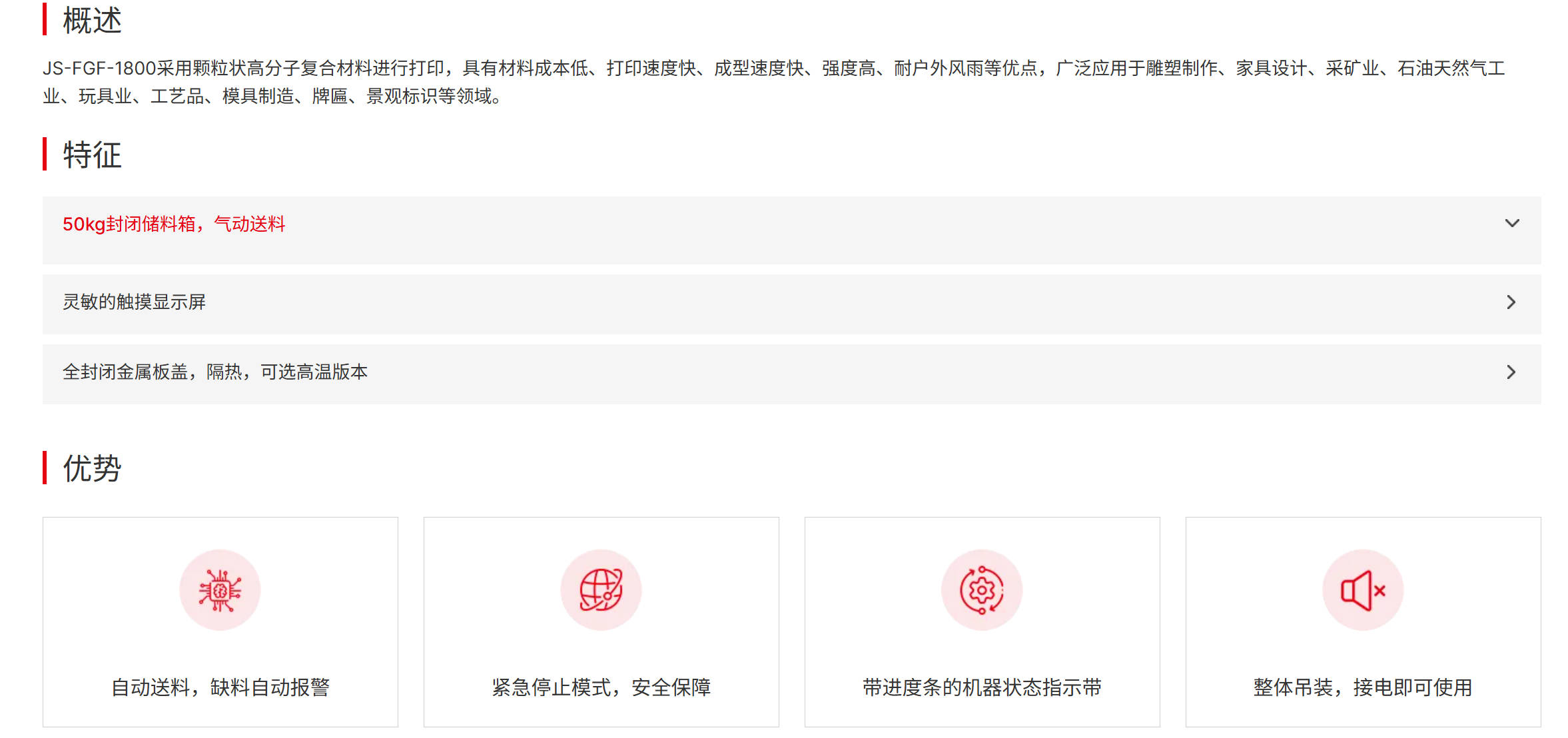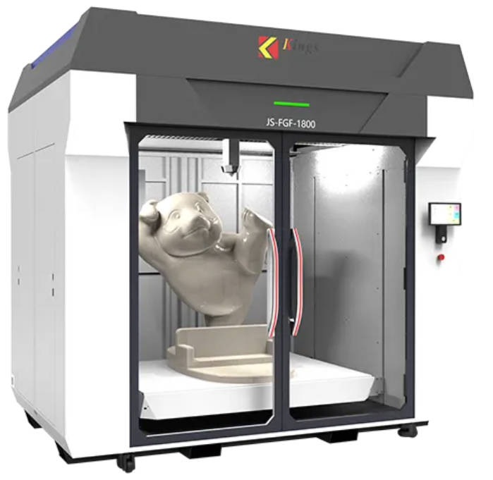 是一款专注于大尺寸熔融颗粒制造(FGF)技术的3D打印机,专为工业级生产打造,能处理聚合物复合材料和颗粒原料,整机占地不到三平方米。设备配备最大8毫米口径喷头,并搭载50公斤密封料仓,通过气动方式稳定供料。这款机器具备高速度、高强度和强耐候性等特点,特别适合户外长期使用。目前已被广泛应用于雕塑创作、家具生产、能源设备模具以及矿山机械等多个领域。