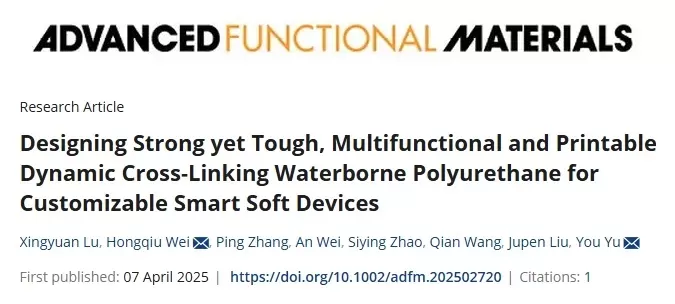 Devices”为题发表在《Advanced Functional Materials》上,为高性能DCWPU的设计和应用开辟了新途径。