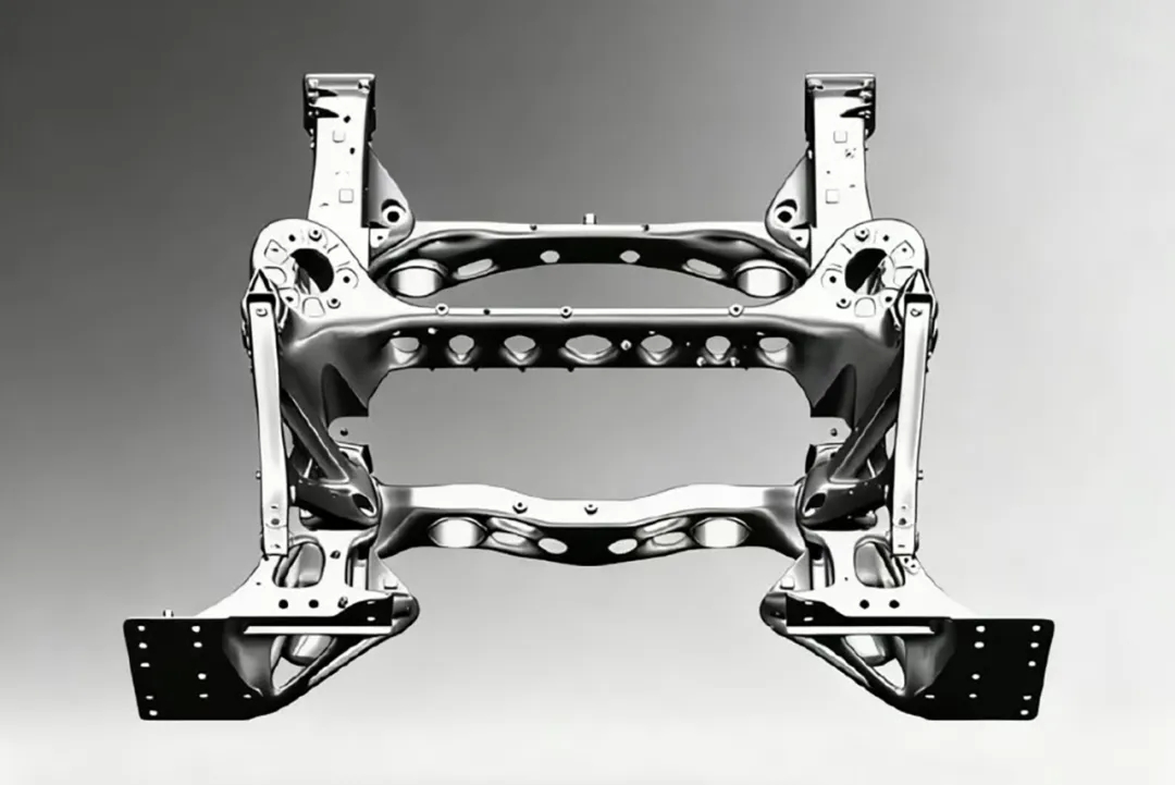 轻量化和高度集成化是U9X车身的突出技术特点;通过拓扑优化设计,利用空腔与筋条协同加强;该设计在同等质量下,其扭转刚度相比于实心结构提升超200%,实现重量与强度的按需分布,为安全性与轻量化奠定了坚实基础。由铂力特3D打印工艺成形的高强度铝合金车身,较传统方案减重超30%。