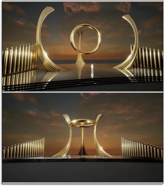 艺术性:以“湾区之帆”“科技之链”为设计理念,三支弯曲立柱如珠江浪涌,中心圆盘似木棉花绽放,整体需呈现流动的美感与力量感;