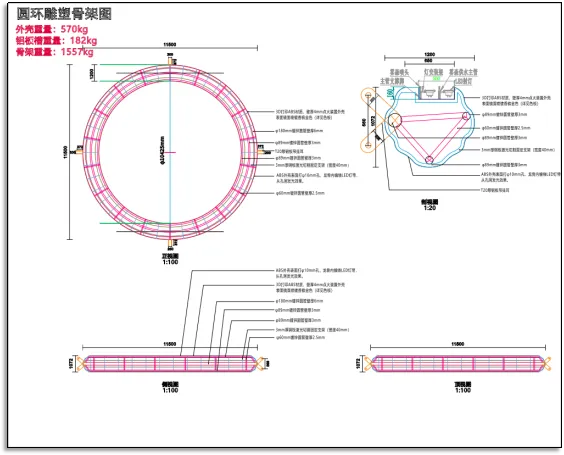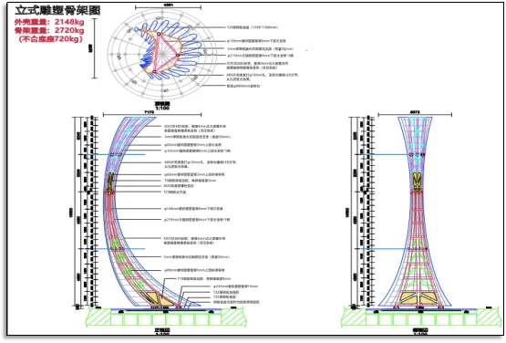 功能性:内部需集成龙骨结构支撑16.5米高度,表面开孔嵌入LED灯珠,实现“由内而外”的发光效果;
