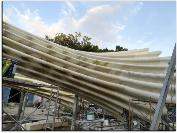 为确保16.5米高的火炬塔在户外长期稳定,团队在内置钢龙骨基础上,额外增加“打印层+玻璃纤维网格布”复合加固层: