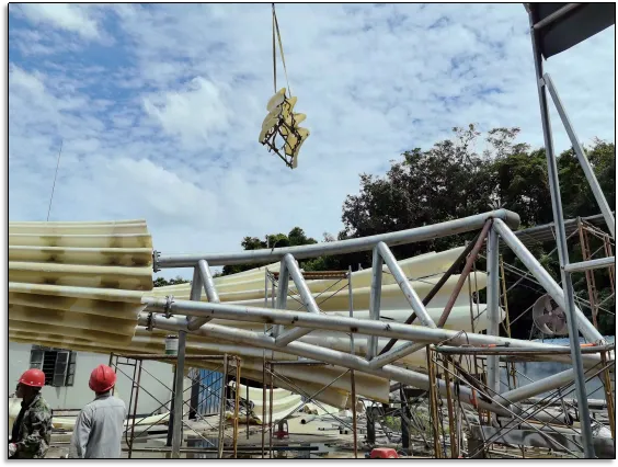 安装总指挥陈工介绍:“我们采用‘地面预拼装+高空微调’策略。先用全站仪在地面完成模块预拼,标记对接基准线;再通过汽车吊+液压千斤顶缓慢提升,实时监测水平度与垂直度。最终,仅用7天便完成全部安装,经检测,所有对接点误差均控制在1mm以内。”