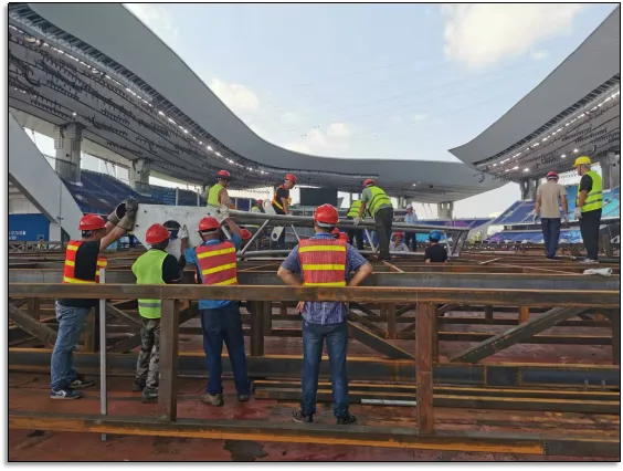 10月1日,拆解后的28个模块从中山启运至广州奥体中心。安装团队面临两大挑战: