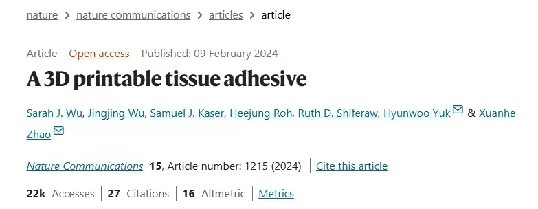 3D printable tissue adhesive”为题发表在《Nature