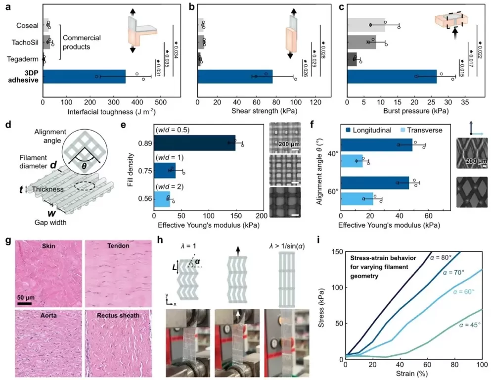 在外科手术和组织修复领域,全球每年超3亿例手术都面临组织连接、伤口密封和器械固定的问题。传统的缝合和钉合技术不仅操作复杂,还会对组织造成较大损伤。组织粘合剂作为替代方案虽具优势,但现有胶水和水凝胶类粘合剂存在明显局限,其形状和性能制造自由度低,难以满足定制化、特定应用的需求,限制了其在复杂医疗场景中的使用。