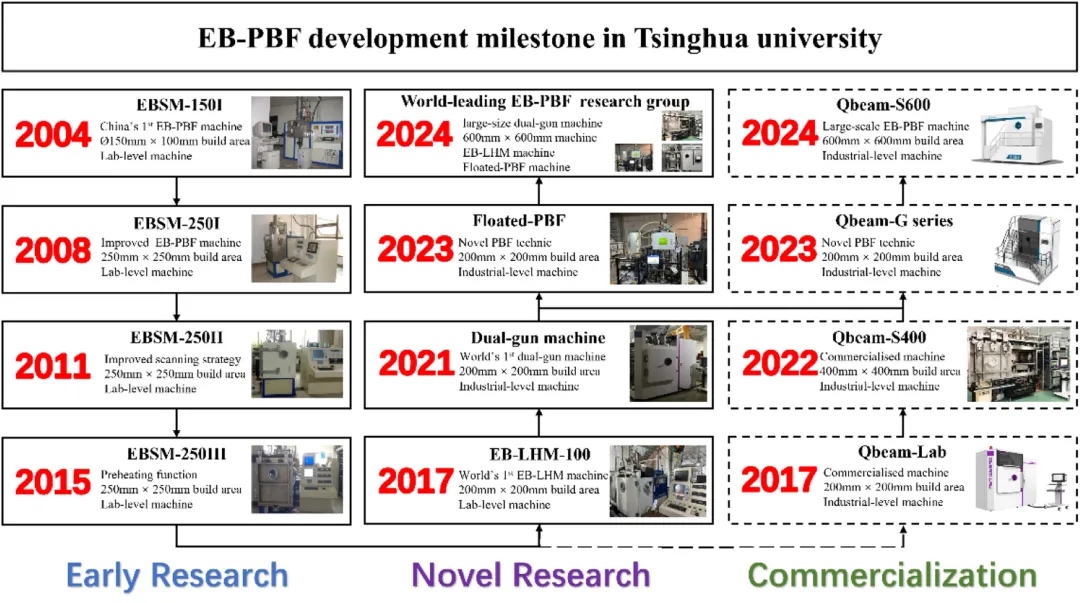 增材制造(AM)作为一项举足轻重的创新技术,给制造业带来了革命性的变化。凭借在增材制造领域三十多年的雄厚实力,中国已取得了重要的里程碑式成就,在相关机械和产品的部署和出口方面已成为全球重要的参与者。中国在粉末床熔融技术领域的突出地位体现在其巨大的市场份额上。电子束粉末床熔融技术(EB-PBF)以其低残余应力和高成型效率而著称,在国际上已引起了广泛关注。自2004年清华大学启动第一项EB-PBF研究以来,中国在这一领域取得了稳步进展,实现了EB-PBF设备的商业化,并开发了多样化的产品线。本综述重点介绍了EB-PBF的研究进展,重点关注其在中国的发展,探讨了新技术,并对未来的发展提出了见解。