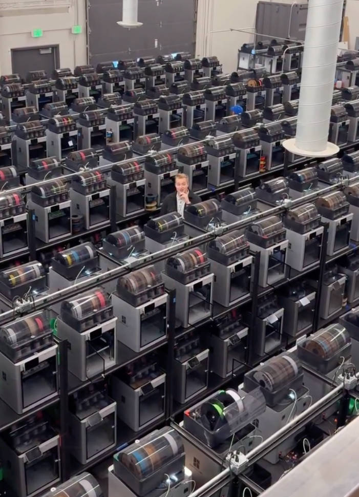 据公司介绍,这座位于美国的打印农场拥有2700台桌面级材料挤出式3D打印机,号称是全美规模最大的同类设施。他们还计划再添置500台设备。农场几乎清一色使用Bambu