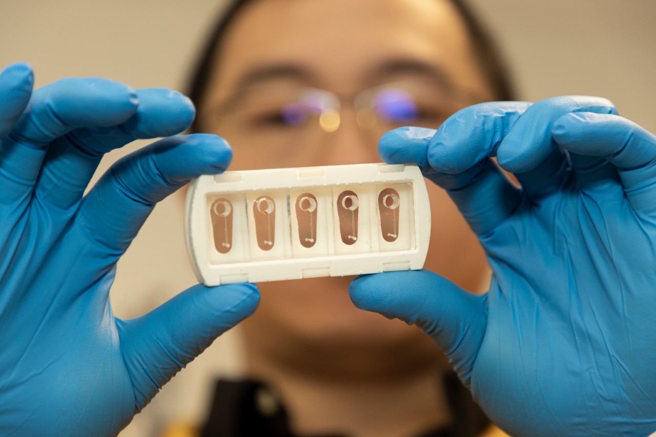 △ 赵博士正在检查芯片上的动脉。图片来自悉尼大学