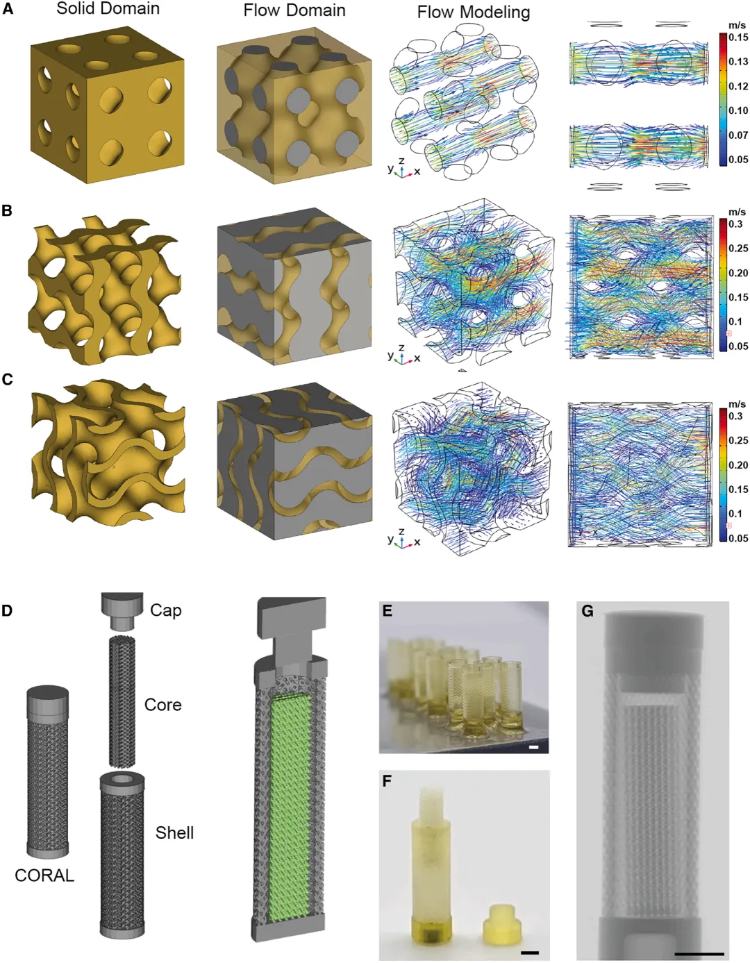 CORAL胶囊采用了三重周期最小曲面(TPMS)晶格结构,这种数学定义的几何结构具有相互连接但不相交的周期性多孔网络。与简单的多孔结构不同,TPMS结构提供了更长的流体路径和更高的压力梯度,确保了微生物样本的高效捕获和保留。