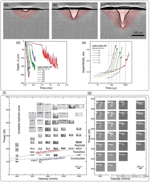 之后,根据熔池和匙孔的表征测量方法,作者将激光熔化模式分为两类(图1)。第一类基于静态的事后金相剖析,而第二类基于原位、动态的过程可视化。相比而言,基于过程可视化的定义更加严谨、更具物理意义,为金属激光粉末床熔融增材制造提供了新的生产指导原则和新的研究方向。关注公众号: