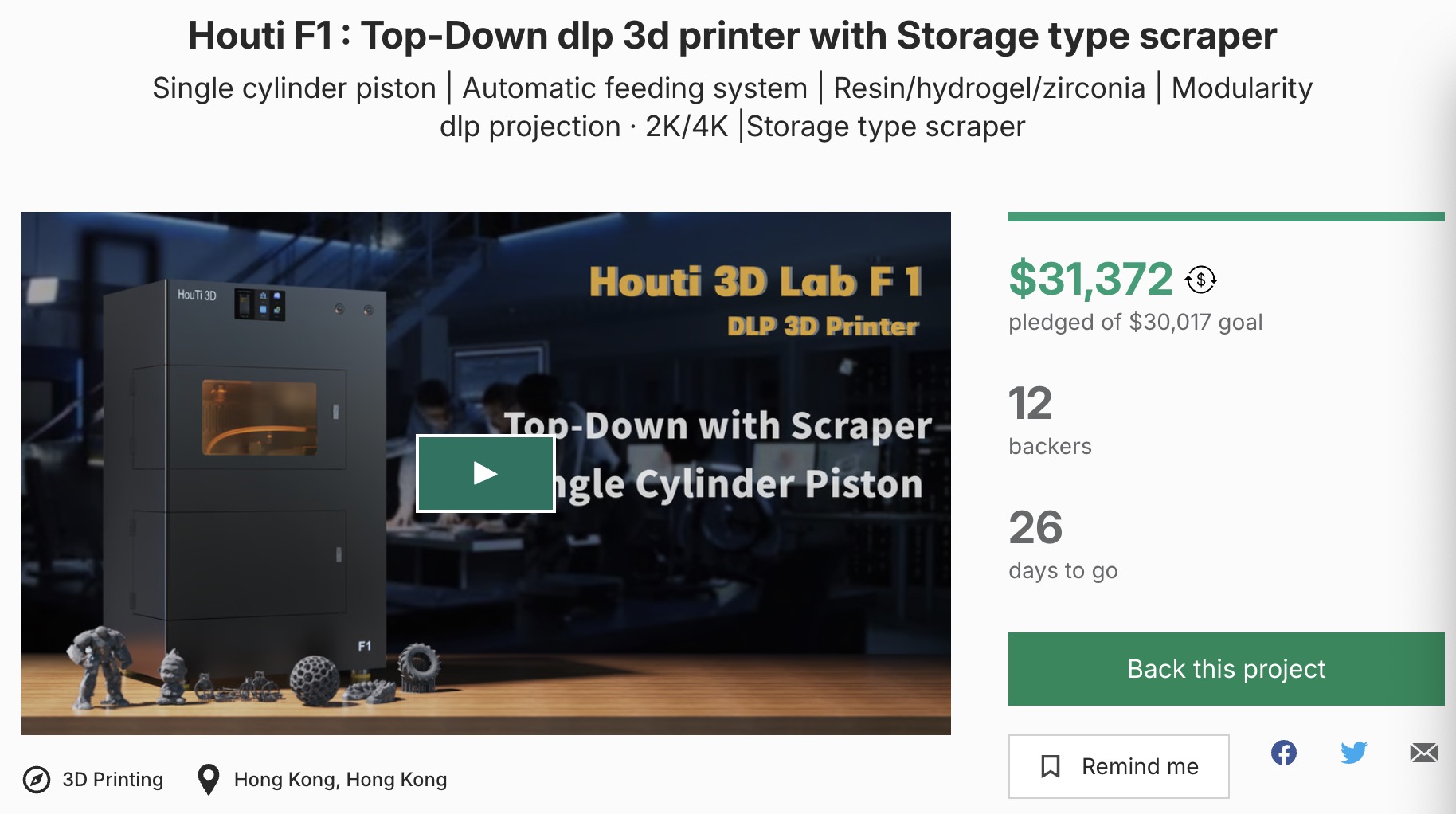 2024年12月14日,宁波后天网络科技(Houti 3D Lab)发布了一款创新型的DLP下沉式光固化3D打印机——Houti