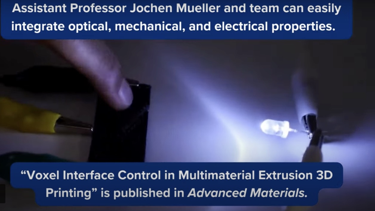 研究的主要作者Mueller教授强调:“界面在3D打印中至关重要,因为它们能够实现多种功能。VI3DP技术有潜力制造出更薄的界面、全新的材料组合,以及集成功能,如复杂的3D电路、机电设备、数据嵌入复合结构以及具有精确配件的现场打印机制。”