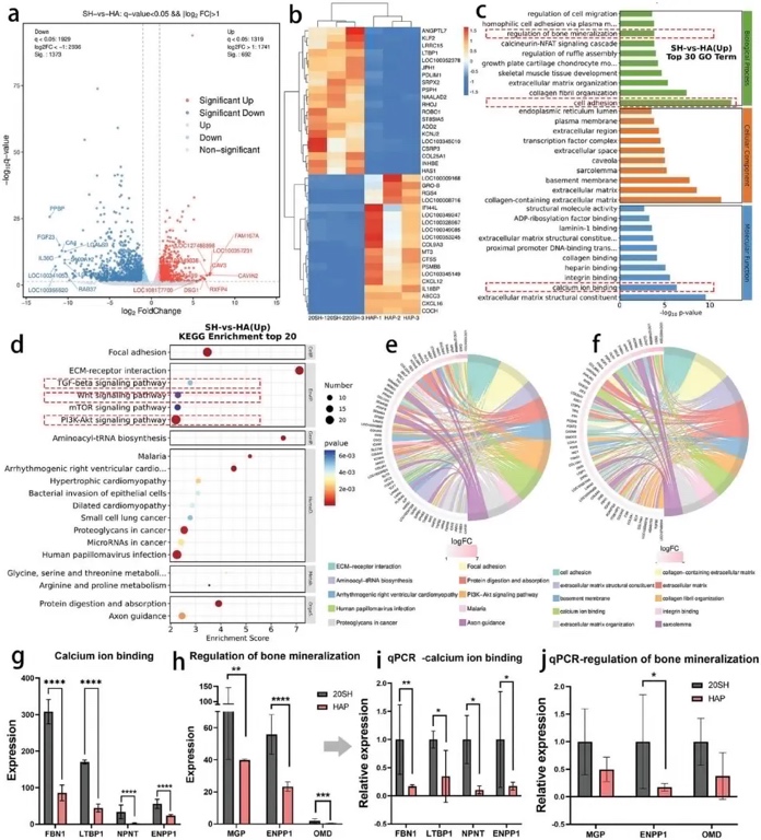 SH样品的Runx2、Col1、骨钙素(OCN)和骨桥蛋白(OPN)均高度表达(图4g)。