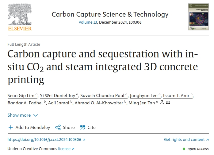 Jen教授表示:“建筑行业是全球温室气体排放的重要来源之一。我们新开发的3D打印混凝土系统提供了一种减少碳排放的替代方案,不仅改善了混凝土的机械性能,还有效减少了该行业对环境的负面影响。进一步展示了将发电厂或其它工业领域产生的二氧化碳用于打印的可行性。考虑到传统水泥生产会排放大量二氧化碳,我们的方法提供了一种通过3D打印将二氧化碳回收并封存的创新方案。”