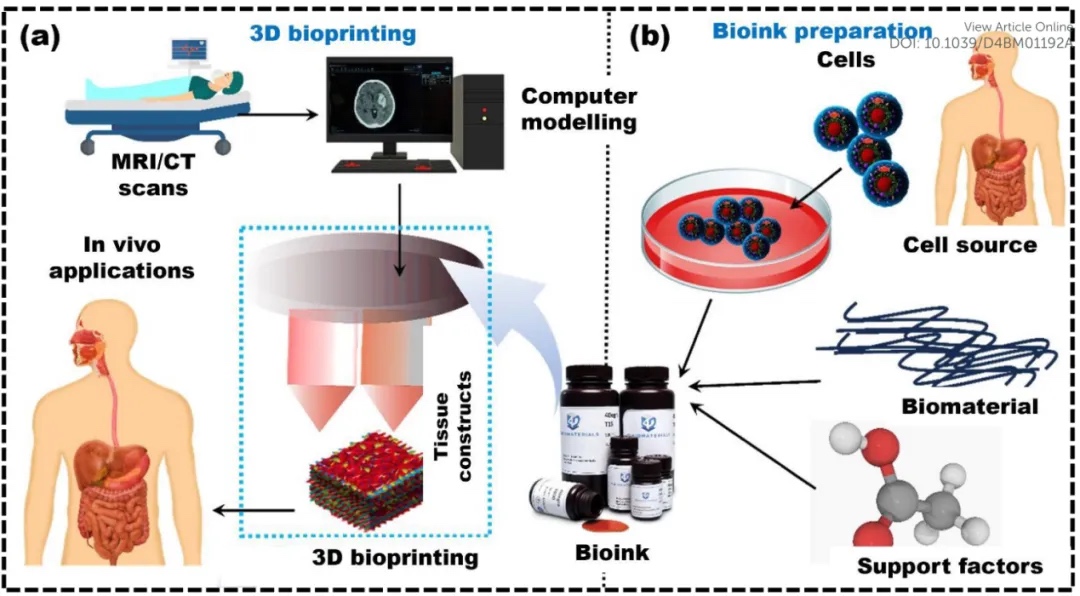近期,印度信息技术设计与制造研究所Himansu Sekhar Nanda/印度理工学院Prasoon Kumar等通过提供用于创建适合骨骼、皮肤、软骨和肝脏组织3D生物打印的生物墨水的最新策略,填补了现有文献中未充分探索的挑战的空白。