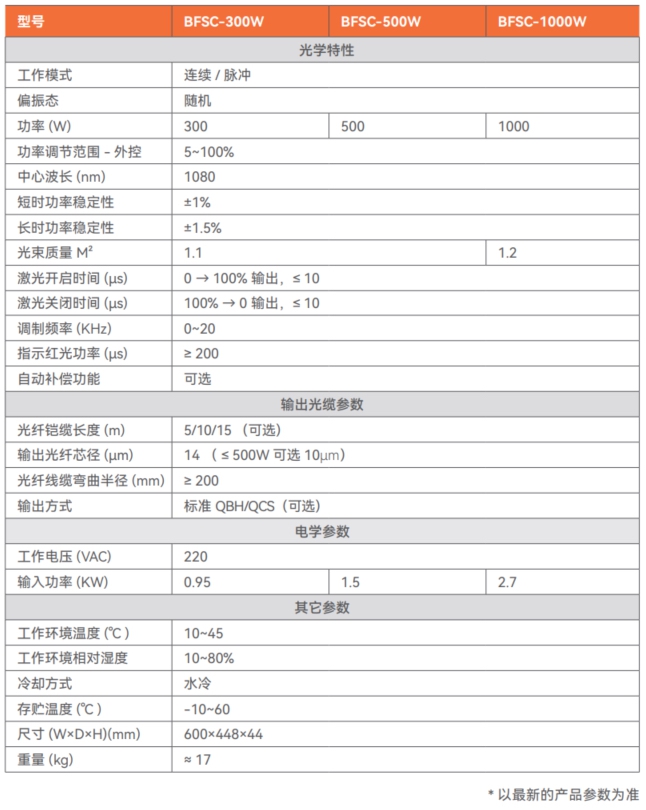 3D打印专用连续光纤激光器(水冷)BFSC 300-1000W