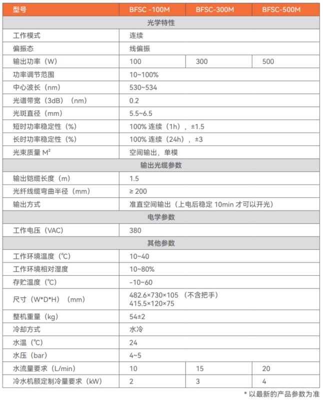 3D打印专用绿光连续光纤激光器(水冷)BFSC 100-500W