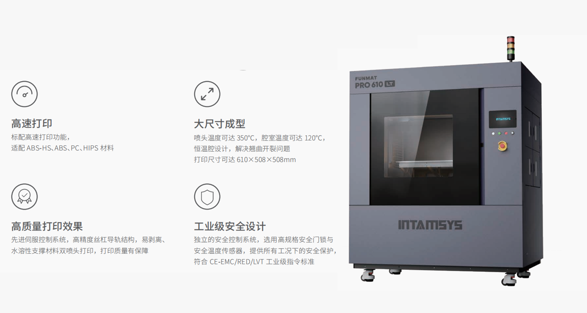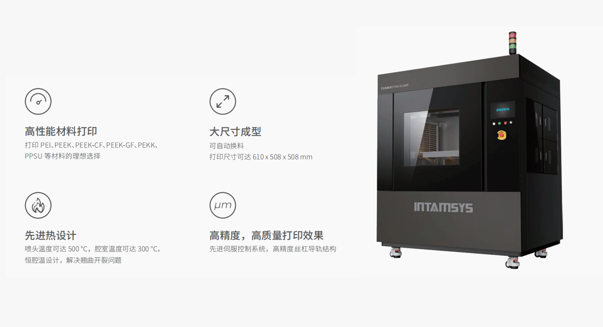 FUNMAT PRO 610HT 是一款高腔温、大尺寸、旗舰级 3D打印设备。它能够充分满足工业级别对高性能材料 PEEK、