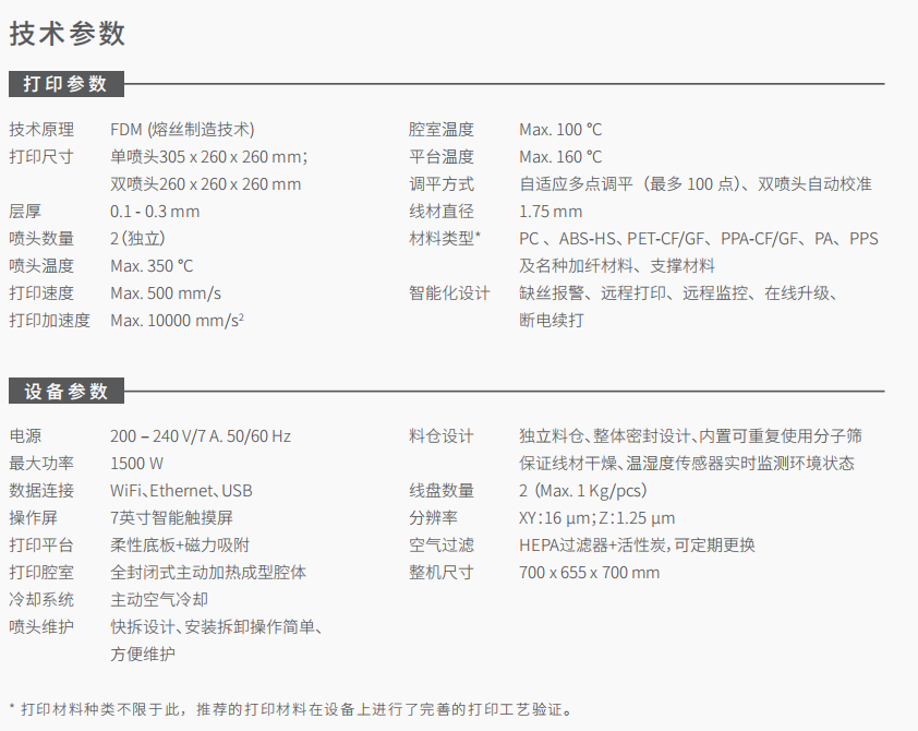 打印设备。它拥有可观的打印尺寸,更丰富的打印材料选择,能够为工业用户提供完善的高性能材料与纤维复合材料 3D