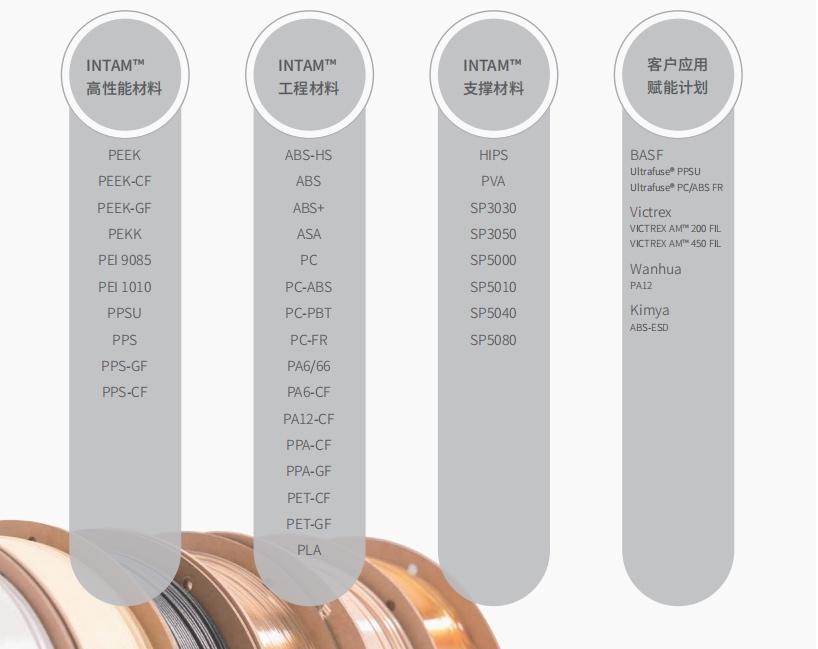 FDM 线材。INTAM 系列线材,搭配 FUNMAT 系列 3D