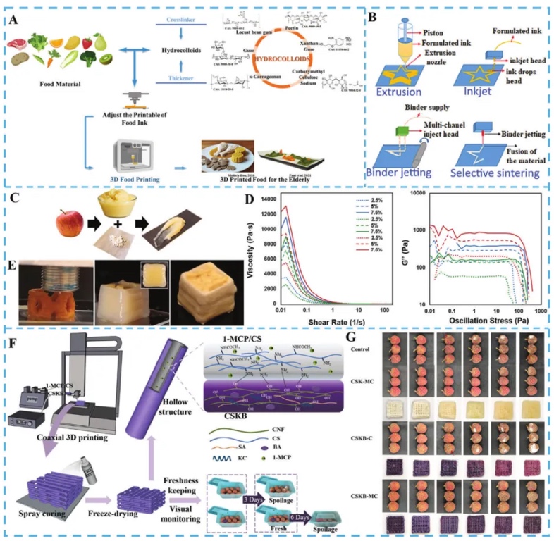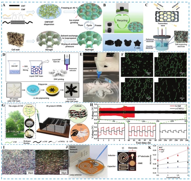 Yuqi和天津科技大学刘苇教授团队关注了CNFs和CNCs辅助3D打印在医学、食品、工程和建筑领域的最新进展,总结了用于3D打印的各种类型的CNF和CNC(方案1)。相关研究成果以“Innovative