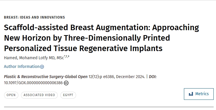 Hamed博士,成功完成了全球首例使用3D打印技术制造的个性化植入物隆胸手术实例。这一创新标志着整形外科进入以患者为中心的个性化医疗新时代。相关研究已发表于美国整形外科医师协会(ASPS)官方开放期刊《整形与重建外科》杂志上。