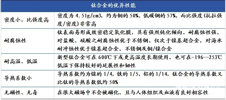 钛金属储量丰富且性能优异,市场需求持续快速增长。钛合金作为二十一世纪的战略金属,具备密度低、强度高、耐腐蚀、无磁性等特性,是众多工业领域高强度、轻量化材料的首选,在国防军工、航空航天、医疗、汽车等领域应用前景广阔。