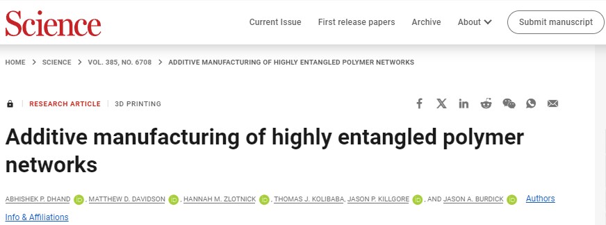 汇总:2024年十篇发表于Science和Nature上的3D打印研究,引领3D打印技术飞跃