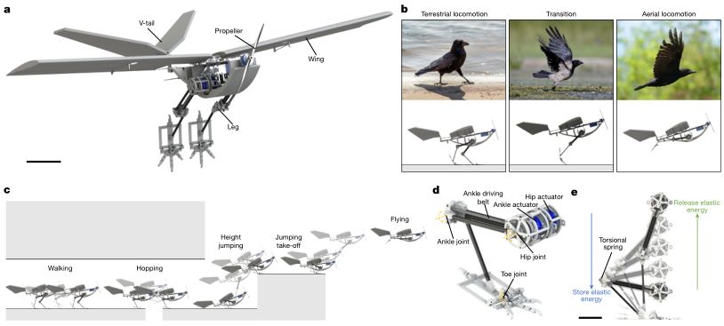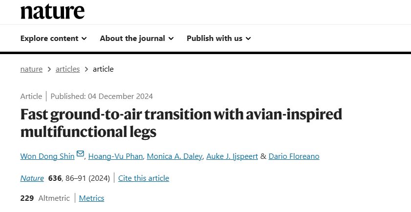 2024年12月4日,来自瑞士洛桑联邦理工学院 (EPFL) 的研究人员在Nature上发表了关于仿生机器人 RAVEN (Robotic Avian-inspired Vehicle for multiple ENvironments) 的最新研究成果,题目为Fast ground-to-air transition with avian-inspired multifunctional legs。此机器人模仿鸟类,能够行走、跳跃和飞行,并利用受鸟类启发的起飞机制,实现了高效的空中-地面过渡。3D 打印技术在 RAVEN 的制造过程中发挥了关键作用,赋能了这项突破性研究。