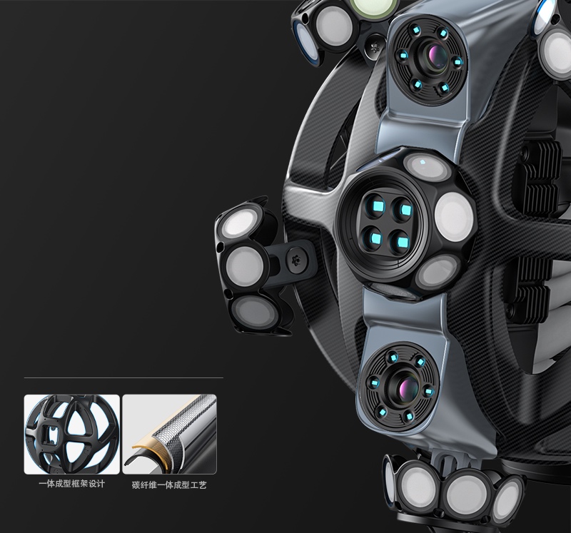 NimbleTrack集多项国内外专利于一身,创新性采用一体式碳纤维成型工艺,相比于行业同类型扫描仪多零件固定拼接的框架结构,一体成型框架减少了组装拼接,不仅提升了产品的美观度,还充分保障了高精度测量的稳定性和可靠性。