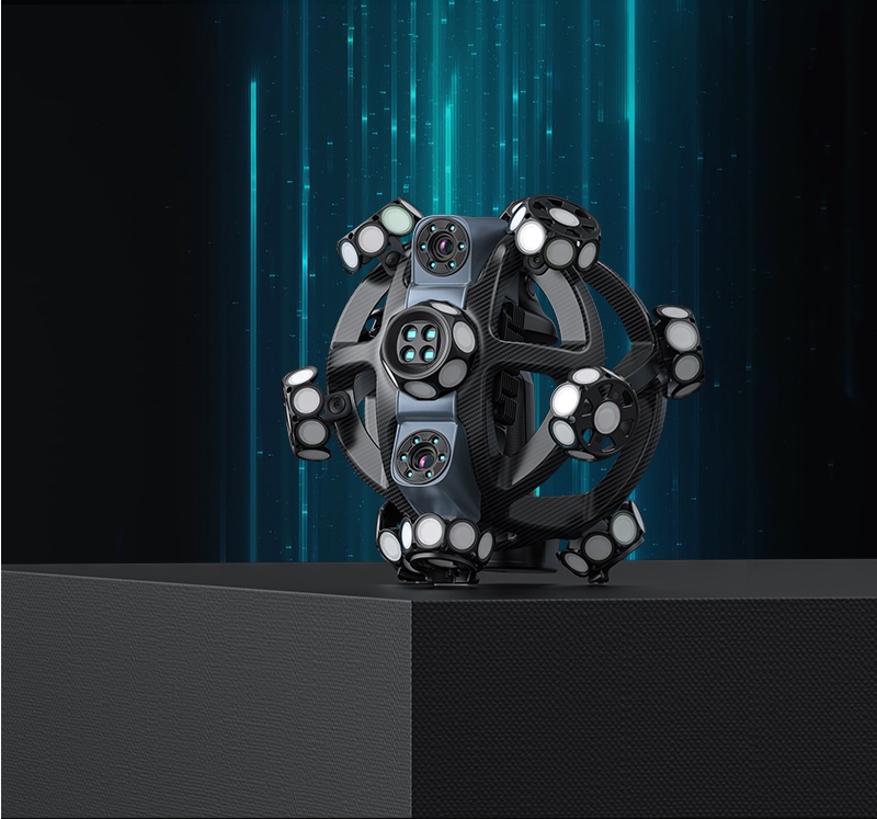 极简设计与先锋工艺的产品理念在NimbleTrack上体现得淋漓尽致,扫描仪优雅流畅的曲面线条搭配一体成型框架,表面采用正十二面体结构,均匀分布标记点岛,确保各角度均能精准追踪,兼顾美学概念的同时,也生动演绎了精密计量的强劲性能优势。