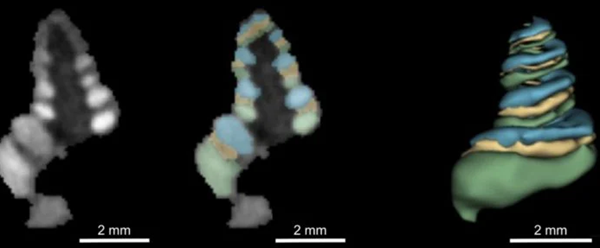 微针将造影剂注入内耳以检测耳蜗的变化,这有助于诊断梅尼埃病等疾病。豚鼠耳蜗的MRI图像显示了耳蜗的不同区室。(照片来源:Anil Lalwani/哥伦比亚大学瓦格洛斯内科医生和外科医生学院)