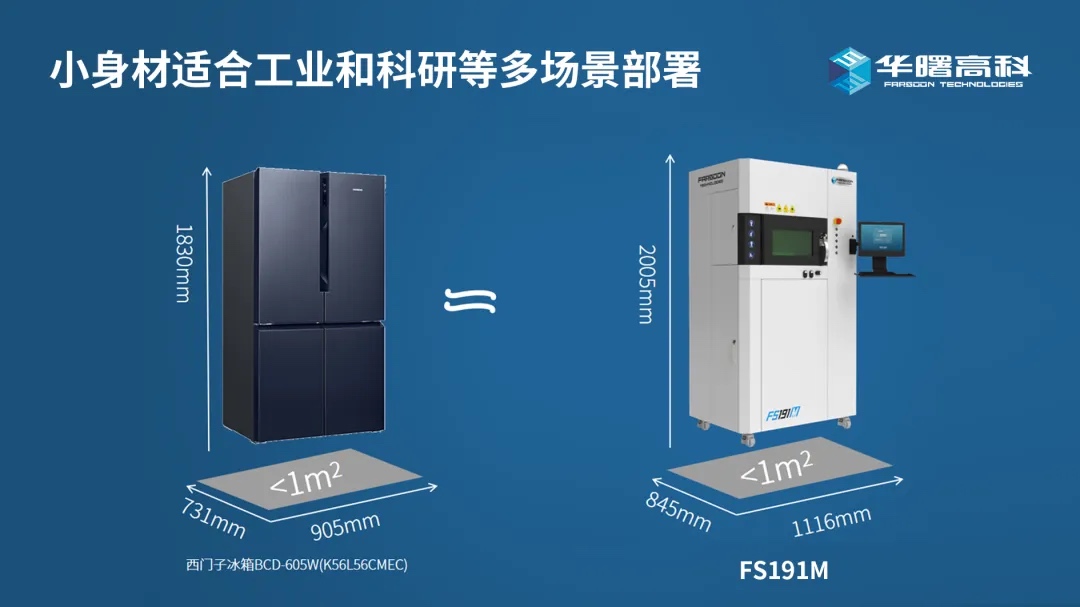 对于科研实验室来说,占地空间小,精致且可靠的装备无疑具备吸引力。FS191M外形尺寸1116×845×2005mm,主机占地面积不到1m²(相当于一台双门冰箱占地面积),节约实验场所用地,适用工业及高校大部分客梯尺寸,且配置福马轮,既无需使用叉车运输,到位后还可固定定位和调平。整机采用模块化设计,提升维护保养便利性,非常适合科研、工艺材料研发等应用需求场景。