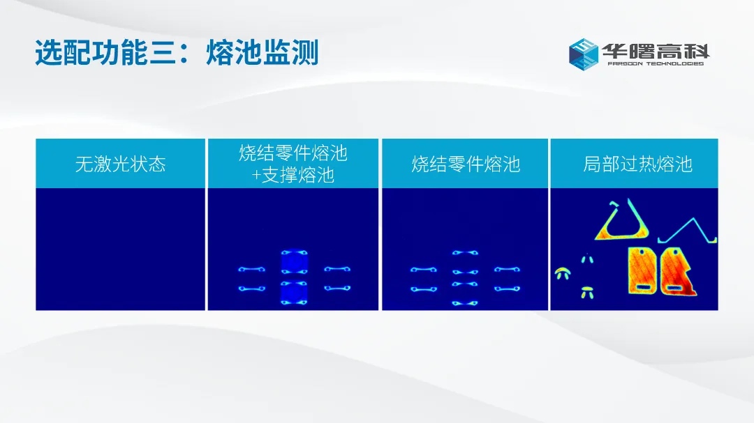 华曙高科自主研发的熔池监测系统,实现了行业内领先的高分辨率、大视野熔池监测,兼具高分辨率和成本优势,为打印过程工艺评价和优化提供有效手段,以实现更稳定的打印质量。