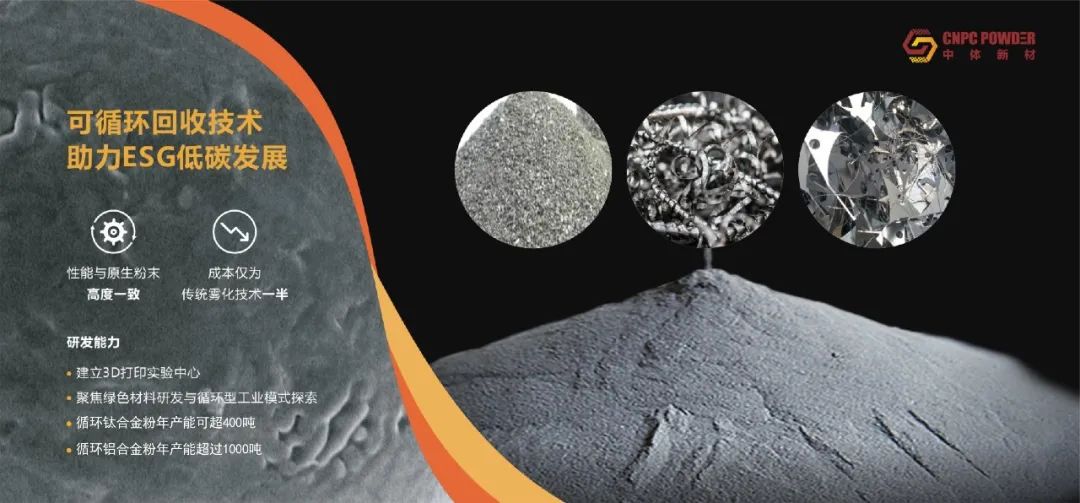 在绿色可持续发展方面,中体新材同样走在行业的前列。公司采用绿色能源,降低碳排放,成功实现了钛合金粉、铝合金粉的100%废料循环回收生产,并获得了相应的碳排放和SCS认证,该技术创新不仅降低了生产成本,减少资源浪费,也满足了客户对低碳公司对低碳环保产品的需求,高品质,低成本3D打印金属粉末材料在市场上获得了广泛认可。