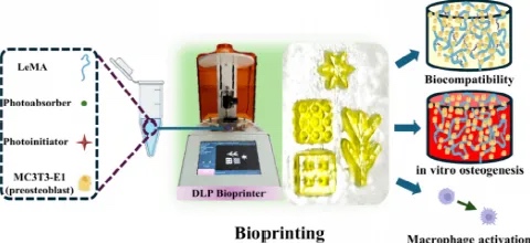 针对此问题,来自印度科学与工业研究理事会(CSIR)的Syed G. Dastager&印度科学研究所的Kaushik Chatterjee等人探索了细菌来源的甲基丙烯酸酯果聚糖(LeMA)作为生物墨水用于骨组织支架DLP打印的潜力。